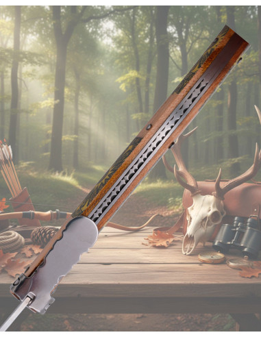 Canivete carraca Third manga decorada damasquino, série Madeira Bordo