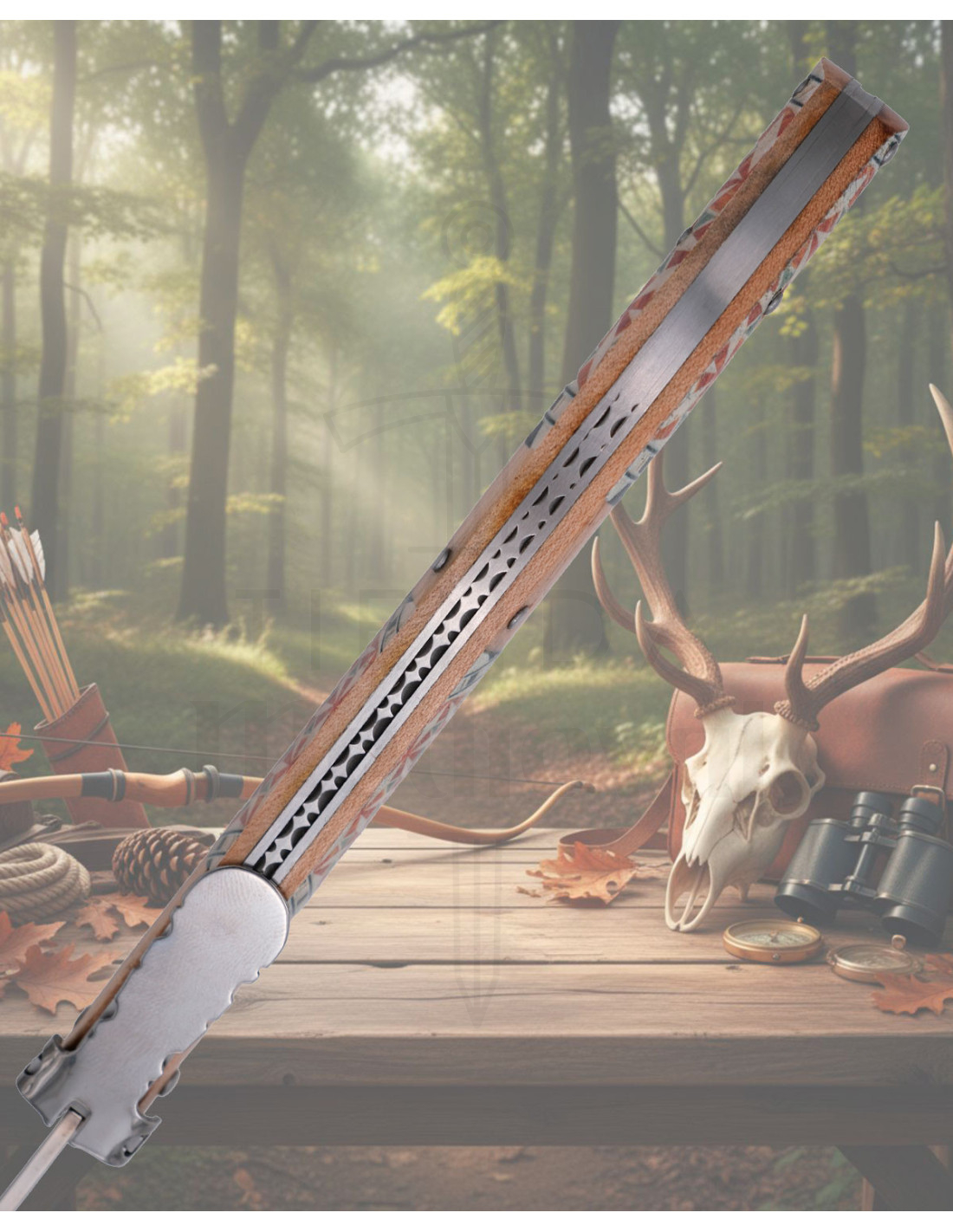 Esta proposta eleva o cotidiano a algo especial, graças a um design que simula taraceado sobre madeira de carvalho, proporcionando calor visual e uma pegada confortável que se sente bem na mão. O trabalho CNC na sua construção garante encaixes precisos, fazendo com que cada movimento da alavanca seja suave e constante, ideal para quem valoriza mecânicas bem feitas.