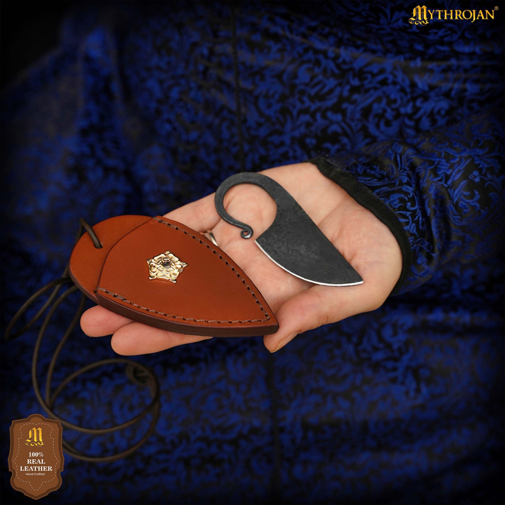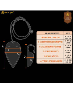 Projetada pensando no conforto, inclui um cordão de couro para usar no pescoço ou fixá-lo facilmente ao cinto, e o gancho na parte superior do cabo facilita uma pegada segura e um transporte prático. Seu tamanho compacto o torna discreto para o dia a dia, sem abrir mão da presença em feiras, recriações ou como um detalhe distintivo em uma coleção.