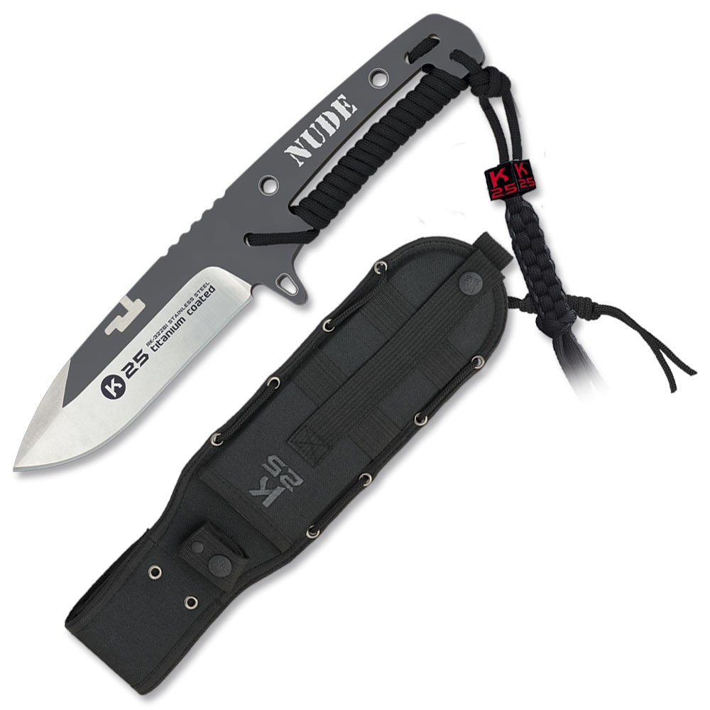 Você está procurando uma faca forte e durável para suas aventuras ao ar livre? A faca modelo Nude é a escolha perfeita para você! Esta faca possui uma lâmina de aço inoxidável banhado a titânio com 10,8 cm de comprimento, o que a torna altamente resistente e eficaz em qualquer situação.