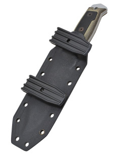 - Micarta antiderrapante e cabo G-10: O cabo é feito de Micarta com incrustações G-10, proporcionando aderência excepcional mesmo em condições molhadas. Resistente às oscilações de temperatura e umidade, esse cabo oferece conforto incomparável na mão, garantindo total controle em cada movimento.