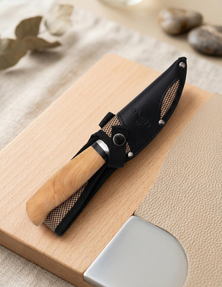 | Que valor agrega em cada saída de aventura ou trabalho? | Seu estojo de nylon e couro protege e assegura sua faca em movimento, pronta para agir a qualquer momento. |