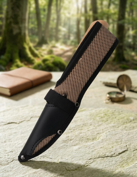 Esta faca, mais que um simples acessório, torna-se um símbolo de controle absoluto, uma extensão da sua essência. A lâmina de aço 440, polida como um espelho, projeta segurança e precisão em cada corte; seu fio curvado e protetor metálico garantem que cada movimento seja limpo e eficaz. O cabo de madeira de fagulha, com um acabamento liso e ergonômico, se ajusta a sua mão, transmitindo firmeza e conforto para tarefas prolongadas. A capa de nylon de alta densidade e couro é o complemento perfeito para guardar sua ferramenta, garantindo durabilidade e proteção a cada saída. Com um peso de 112 gramas, esta peça se torna seu aliado silencioso que responde com confiabilidade a qualquer desafio, mantendo viva a sensação de controle e competência. É mais que uma faca: é sua arma secreta para a maestria em cada corte.