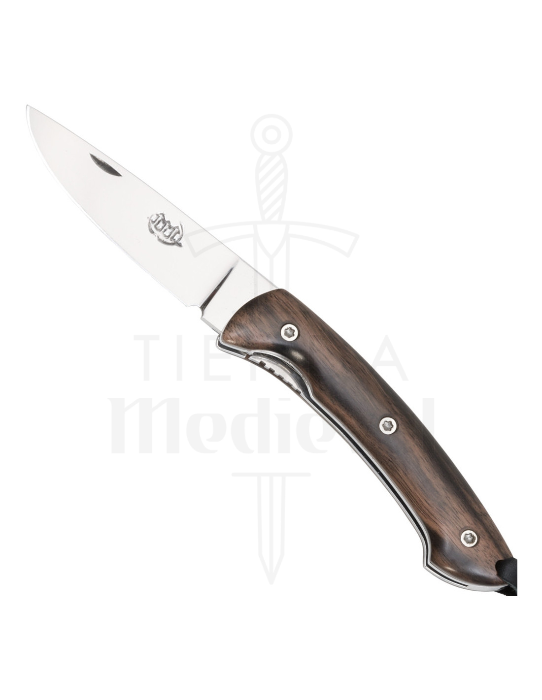 O cabo em madeira Troyeng oferece contraste visual e toque quente, enquanto a estrutura em aço Z40C13 reforça a estrutura e chega a um orifício traseiro pensado para um cordão de segurança, facilitando seu transporte com estilo. A transição da lâmina para o cabo incorpora uma muesca para o polegar que assegura a posição da mão, e a curvatura ergonômica do contorno reduz a fadiga em cortes repetitivos.