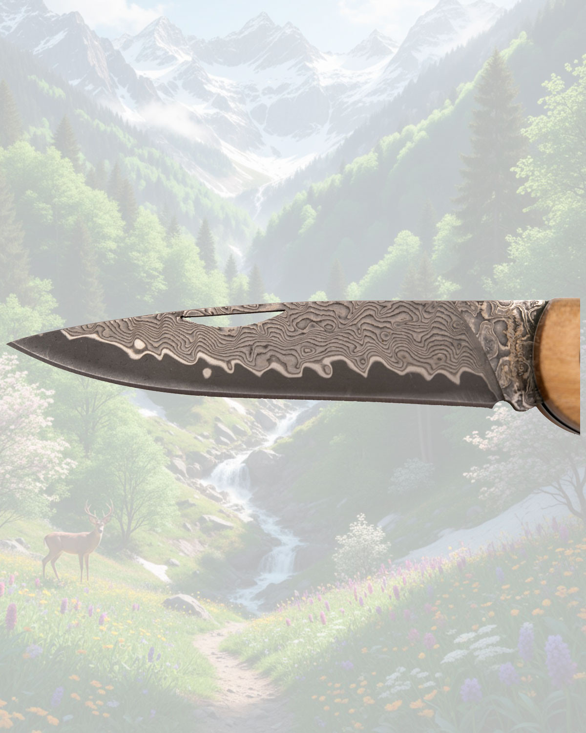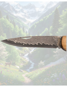 Canivete de bolso de Damasco, madeira de raiz, clássica