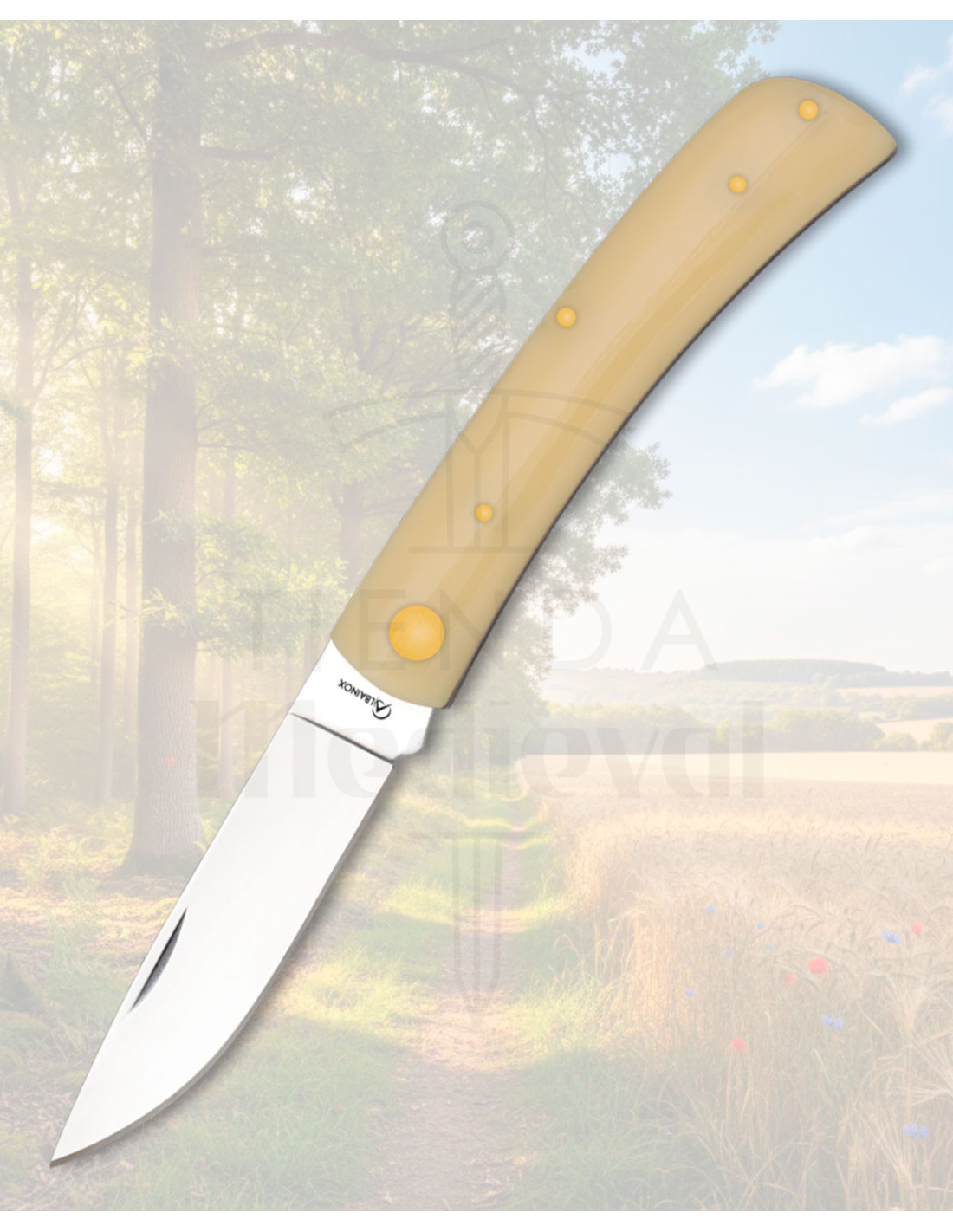 O Canivete de campo Albainox modelo Campanha, Lâmina 6 cm oferece um corte preciso graças ao seu fio reto e à ponta ligeiramente curvada, ideal para tarefas detalhadas e para trabalhos ao ar livre onde o controle é fundamental. O acabamento acetinado da lâmina reduz reflexos, facilitando cortes seguros e constantes sem distrações.