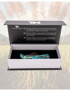 Ele vem apresentado em uma caixa que realça seu caráter de presente especial ou de peça de coleção, ideal para surpreender um aficionado ou para completar sua própria seleção de facões com um objeto que destaca-se pelo seu design e funcionamento.