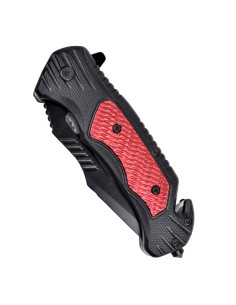 - Segurança e praticidade: O fechamento do forro e o pino garantem sua segurança durante o uso. Além disso, possui lâmina para cortar cintos de segurança e ponta quebra-vidros, tornando-o uma ferramenta de resgate completa.