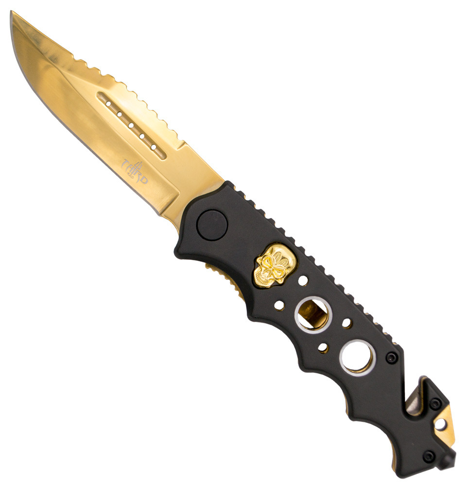 Faca de resgate de caveira vermelha flamejante (20 cm.)