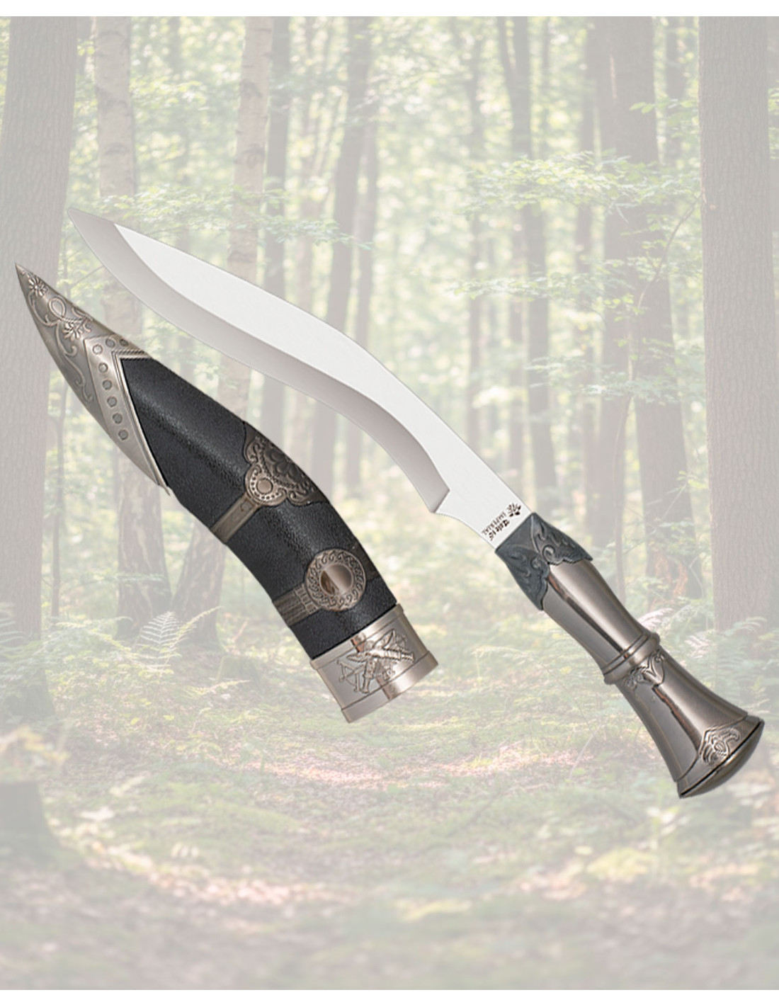 Inspirada na tradição Gurka, associada à lendária habilidade e valentia dos guerreiros nepaleses, esta kukri decorativa traz um toque de história e caráter à sua coleção sem perder o foco ornamental.