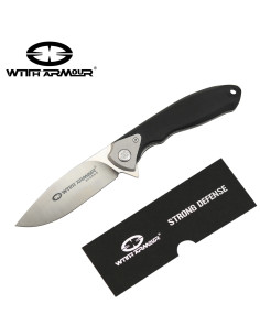 Apresentamos o Canivete Tático Soldier, fabricado pelo renomado fabricante americano With Armour! Com comprimento de lâmina de 3,5' e espessura de 3 mm, esta faca oferece o equilíbrio perfeito entre versatilidade e precisão. O seu acabamento stone wash confere-lhe um aspecto resistente mas elegante.