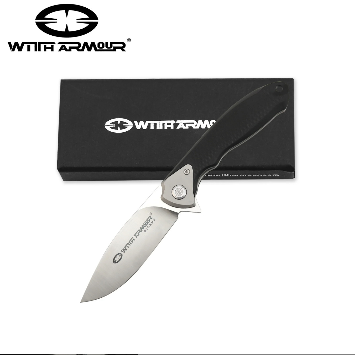 - Alça de aço inoxidável e material G10 para durabilidade e aderência segura.