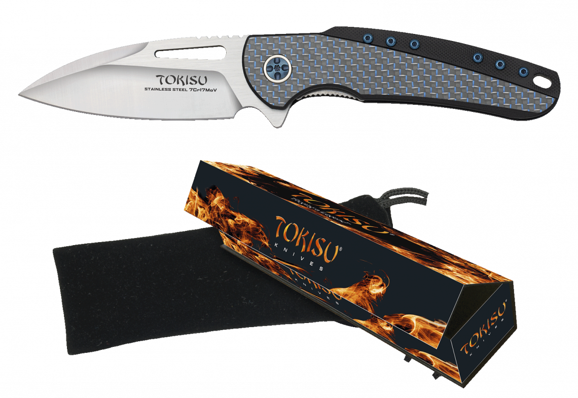 Se você está procurando uma faca que alia alta qualidade e design elegante, a Faca Tokisu com cabo G10 e fibra de carbono azul é a escolha perfeita para você!