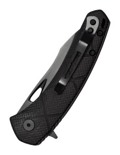 - Alça ergonômica G10: A alça preta é feita de G10 e é ergonomicamente projetada para oferecer uma pegada segura e confortável em todas as condições. Com superfície texturizada, garante ótimo controle em cada movimento. Além disso, possui um clipe de cinto de aço e um orifício para cordão para portabilidade conveniente em qualquer situação.