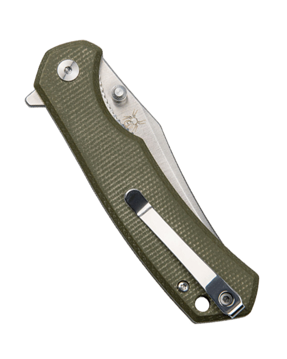 O cabo em Micarta canvas cor verde oliva não só proporciona um aspecto sóbrio e profissional, mas também sua textura rugosa melhora a aderência em condições úmidas ou com luvas, para que seus movimentos sejam sempre firmes e controlados. O orifício na extremidade permite adicionar um cordão de segurança, facilitando seu transporte ou acesso rápido.