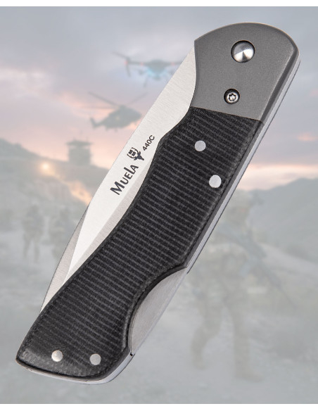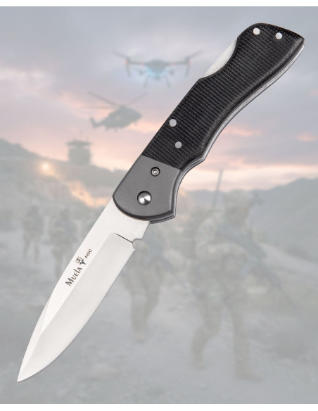 Faca Muela 440C Micarta Preta Lock Back com bainha