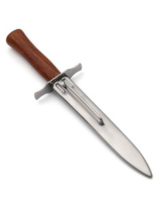 Esta réplica apresenta uma lâmina de 17 cm e um comprimento total de 28 cm, proporcionando uma aparência fascinante e autêntica. A sua bainha de aço, fiel ao original, completa a imagem desta faca de combate. A faca é afiada na fábrica.