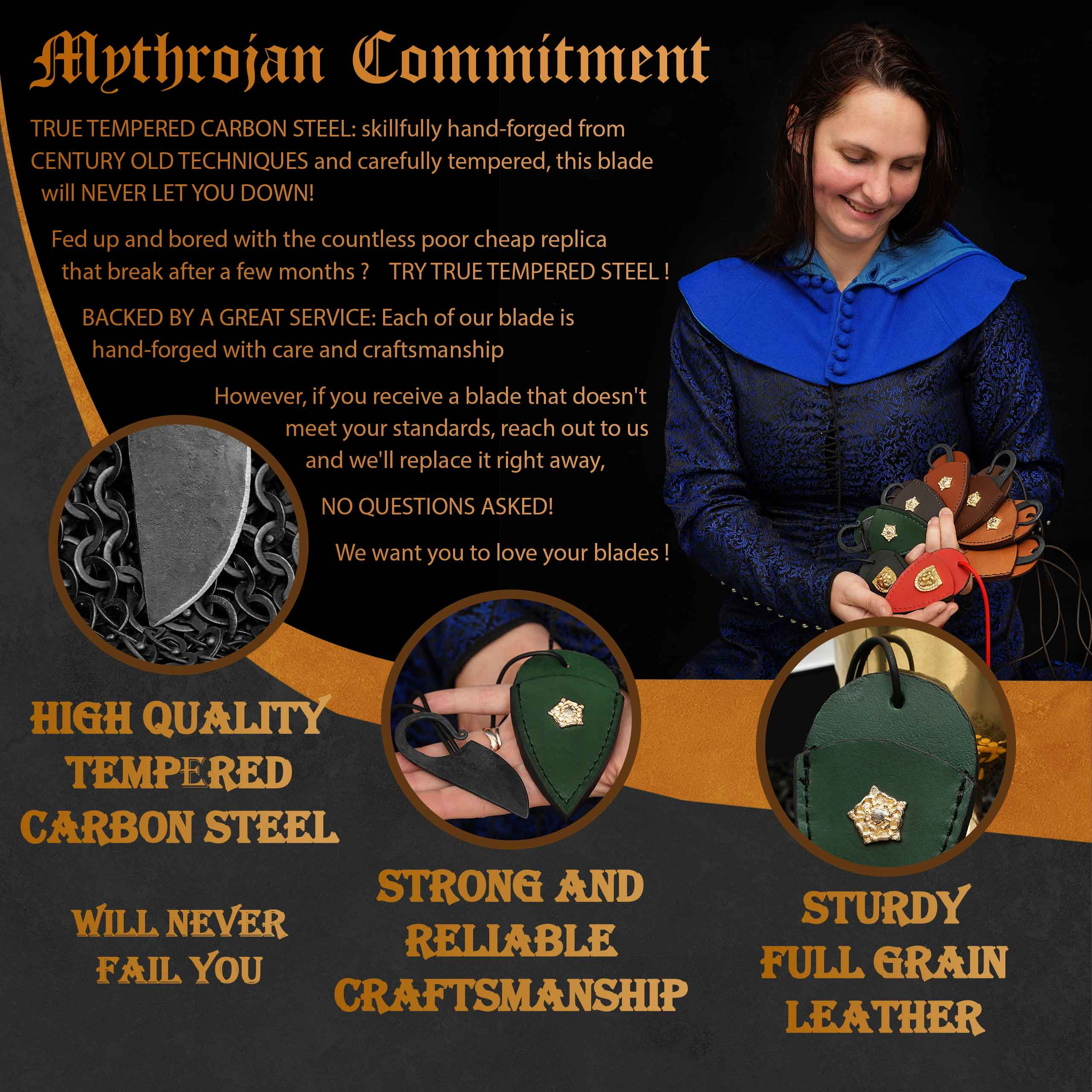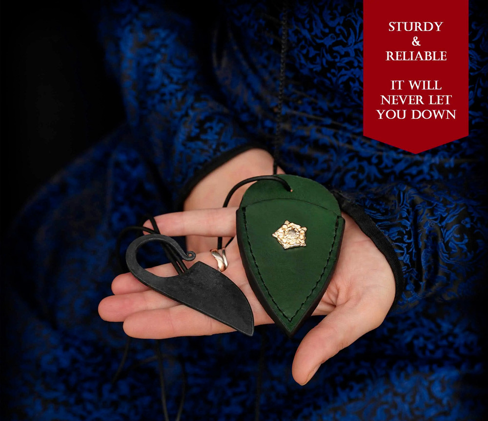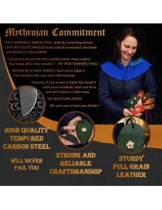Esta faca não é apenas uma peça decorativa; ela foi projetada para ser completamente funcional. A lâmina, embora venha sem fio para uso em recriações, pode ser afiada se você preferir. Graças ao seu tamanho compacto e prático, é confortável para levar em atividades ao ar livre, recriações históricas ou até mesmo como uma peça de coleção. Além disso, vem embalado com óleo para evitar a oxidação durante o envio, e recomendamos manter sempre secas ou oleadas as lâminas de aço carbono para garantir sua longevidade.