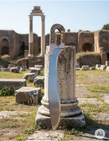 A Falcata Ibérica de Bronze destaca-se pelo seu design autêntico e detalhado, que reflete fielmente a essência das armas utilizadas pelos antigos guerreiros ibéricos. Sua lâmina de aço inoxidável garante uma durabilidade excepcional, enquanto seu cabo decorado dá um toque de elegância e distinção.