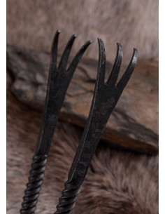Não perca a chance de adicionar um toque medieval à sua casa, evento ou projeto com estas fascinantes pinças de ferro forjado à mão. O seu comprimento de 32 cm torna-os confortáveis de usar e o seu peso equilibrado permite um manuseamento preciso e seguro.