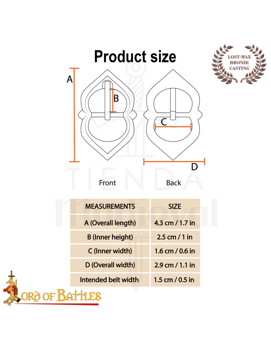 Se você está à procura de onde comprar a Fivela medieval para cinto em bronze polido, esta peça combina autenticidade e praticidade em um formato pensado para quem valoriza o detalhe. É perfeita para completar um traje renascentista, adicionar caráter a indumentárias de recreação ou dar um toque histórico ao seu vestuário cotidiano.