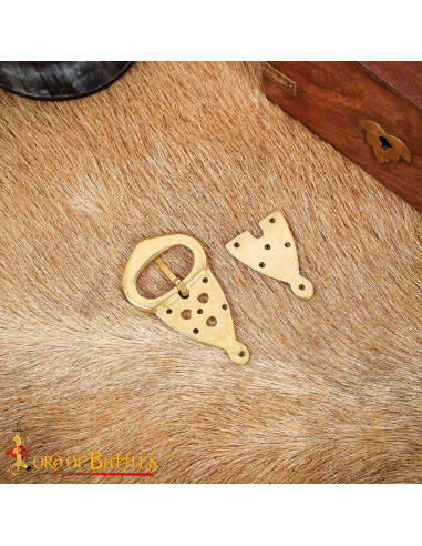 Forjada com a técnica tradicional de cera perdida, esta fivela em bronze envelhecido reproduz com fidelidade o gesto dos ourives vikings, oferecendo uma presença calorosa e uma pátina que ganha caráter com o uso. O acabamento cor de latão proporciona aquele aspecto cru e trabalhado que se encaixa tanto em trajes históricos quanto em acessórios de estilo rústico.