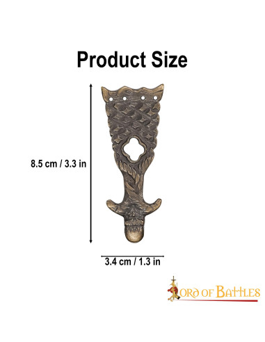 Fabricada à mão mediante a antiga técnica de fundição à cera perdida, cada unidade oferece detalhes nítidos e uma sensação firme ao toque, resultado de um processo artesanal que reproduz a textura e presença das peças originais. Esse trabalho manual se traduz em durabilidade e uma queda visual que realça cintos, bolsas e projetos medievais.