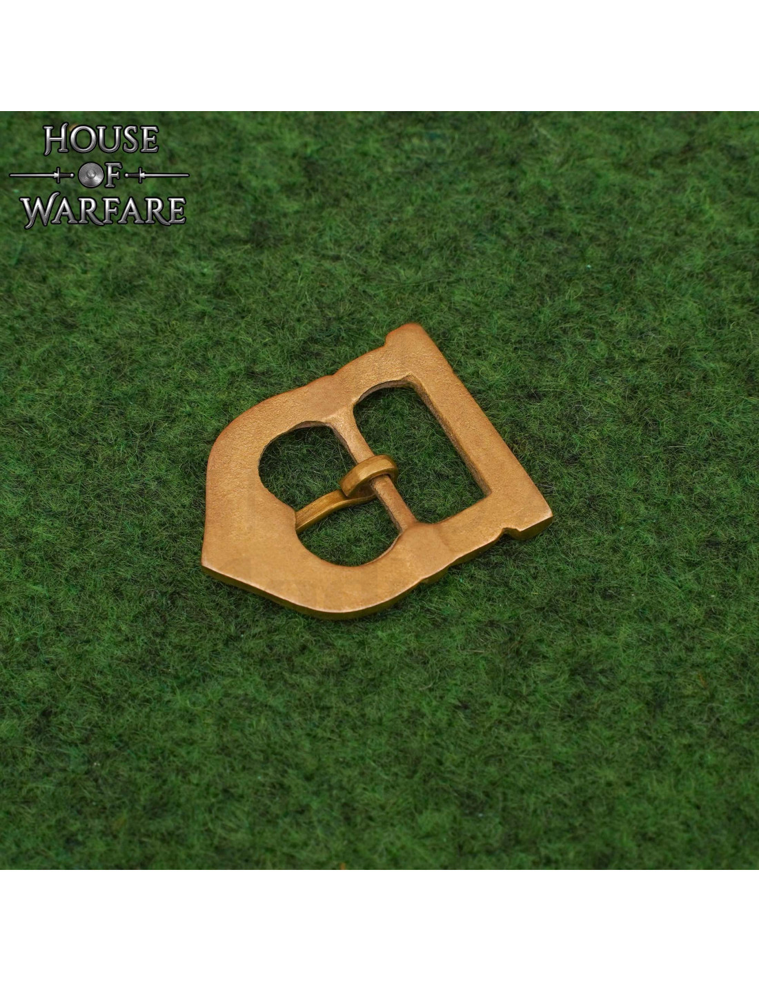 A construção em latão oferece uma durabilidade pensada para o uso frequente em feiras históricas, recriações e LARP, graças à sua resistência à corrosão e ao desgaste. O acabamento polido e o trabalho manual em cada peça garantem um aspecto premium, enquanto as bordas suavizadas e a peça móvel central facilitam um encaixe seguro e confortável em tiras estreitas.
