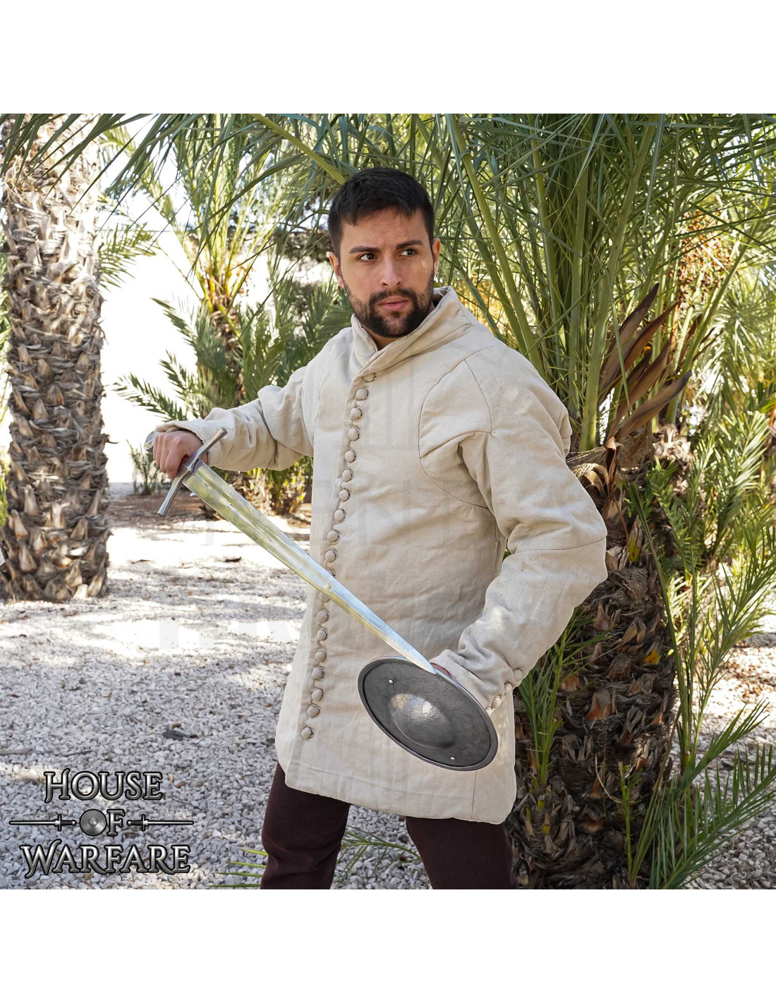 O cabo de madeira remachado proporciona um controle imediato e seguro, pensado para manobras rápidas e para manter a estabilidade durante práticas de esgrima histórica, recriações ou representações cênicas. Seu tamanho compacto facilita o manuseio ágil, a portabilidade ao pendurá-lo no cinto ou transportá-lo para treinamentos e eventos.