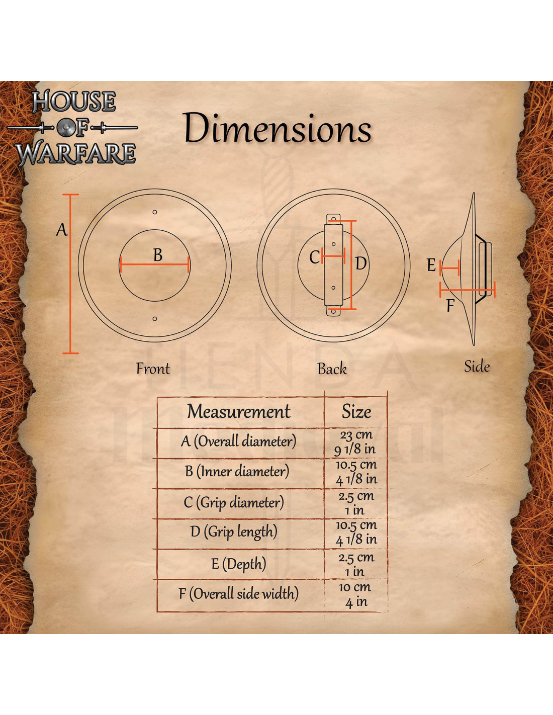 Resgata a funcionalidade da tradição: este design replica a utilidade real dos broqueles entre os séculos XII e XVI, quando eram o complemento de soldados e civis para se defender em espaços reduzidos, parar, desviar e contra-atacar com precisão. Se você busca autenticidade com aparência de peça trabalhada à mão, aqui está.