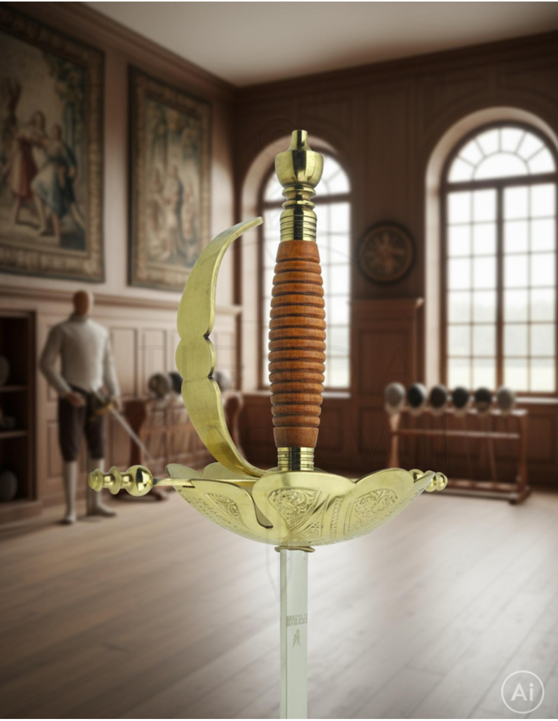Evoca a imagem de duelos de honra e práticas de salão; este florete acrescentará uma dimensão de distinção a qualquer ambiente.