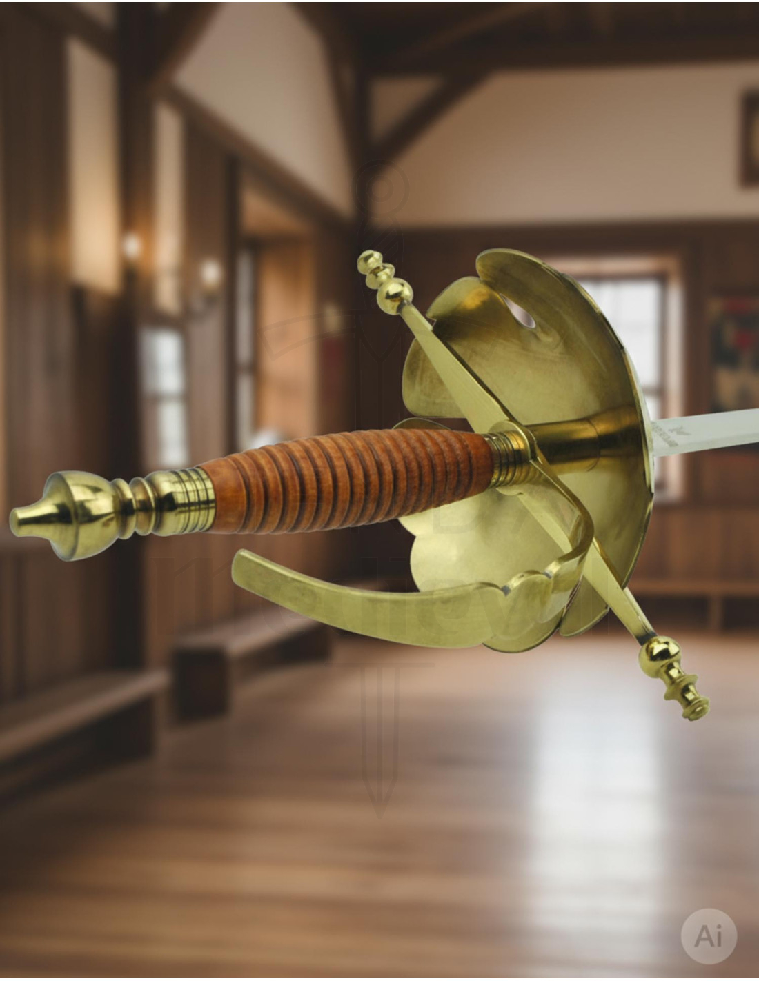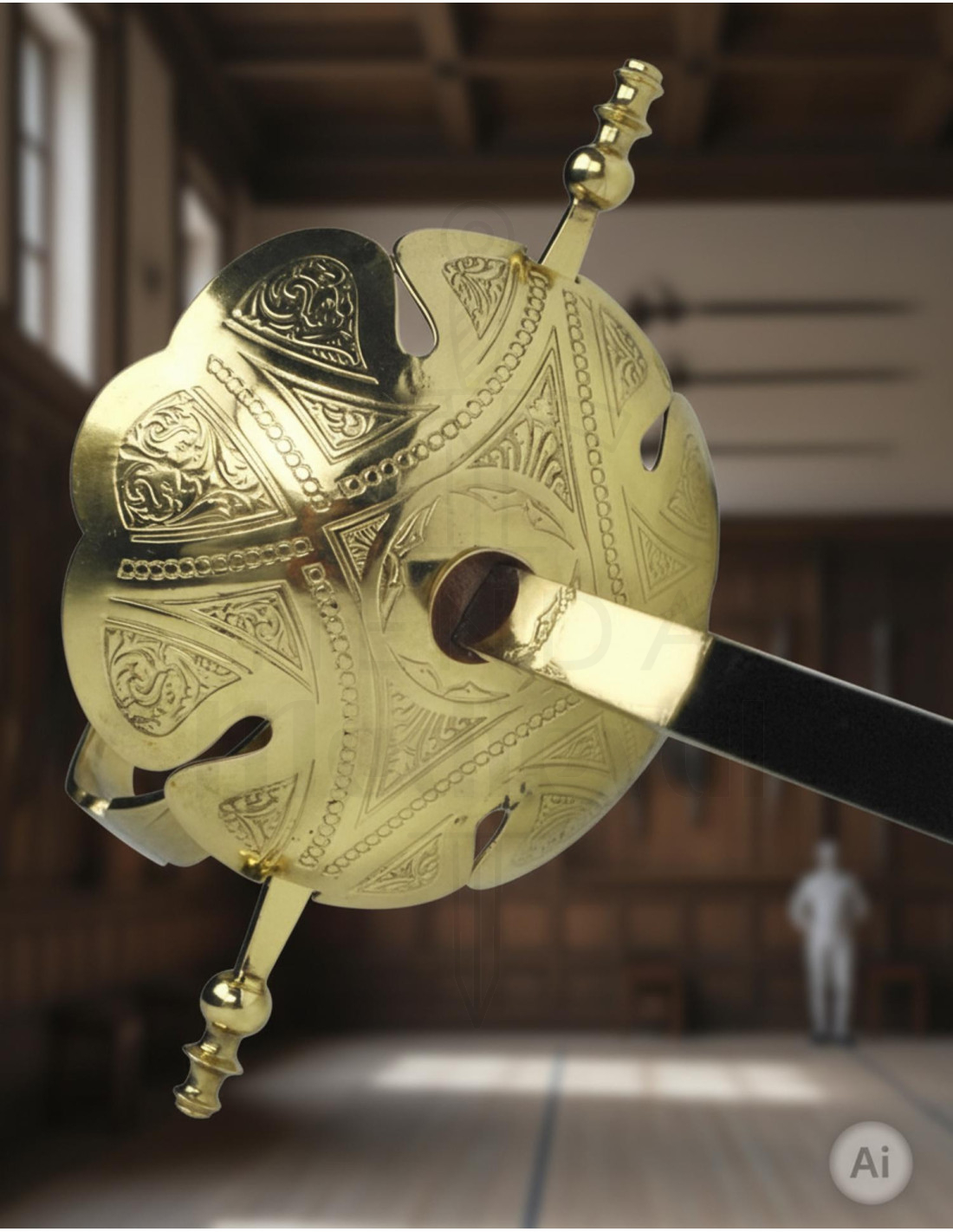 - Presença Imponente: Projetado para reproduzir fielmente as armas de esgrima, oferece um excelente equilíbrio visual que se traduz em uma silhueta elegante ao ser exibido na parede ou vitrine.