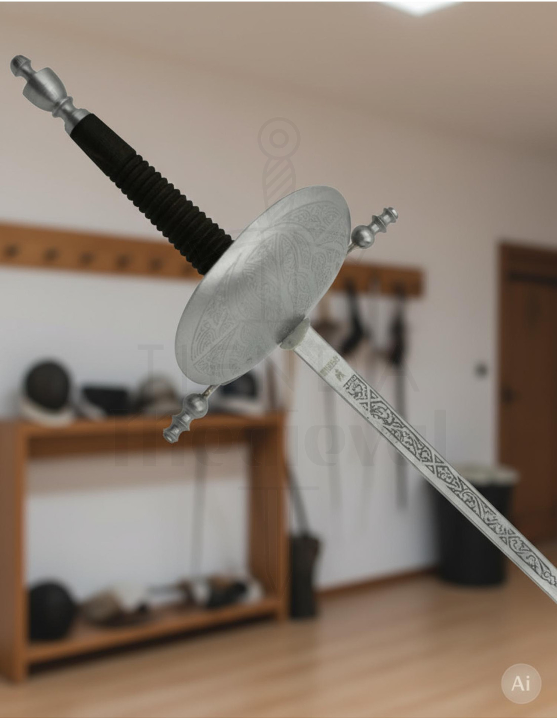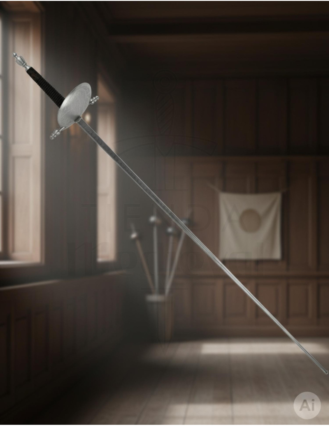 - Design: Réplica de florete de concha, uma espada longa e flexível, com acabamento rústico autêntico e único.