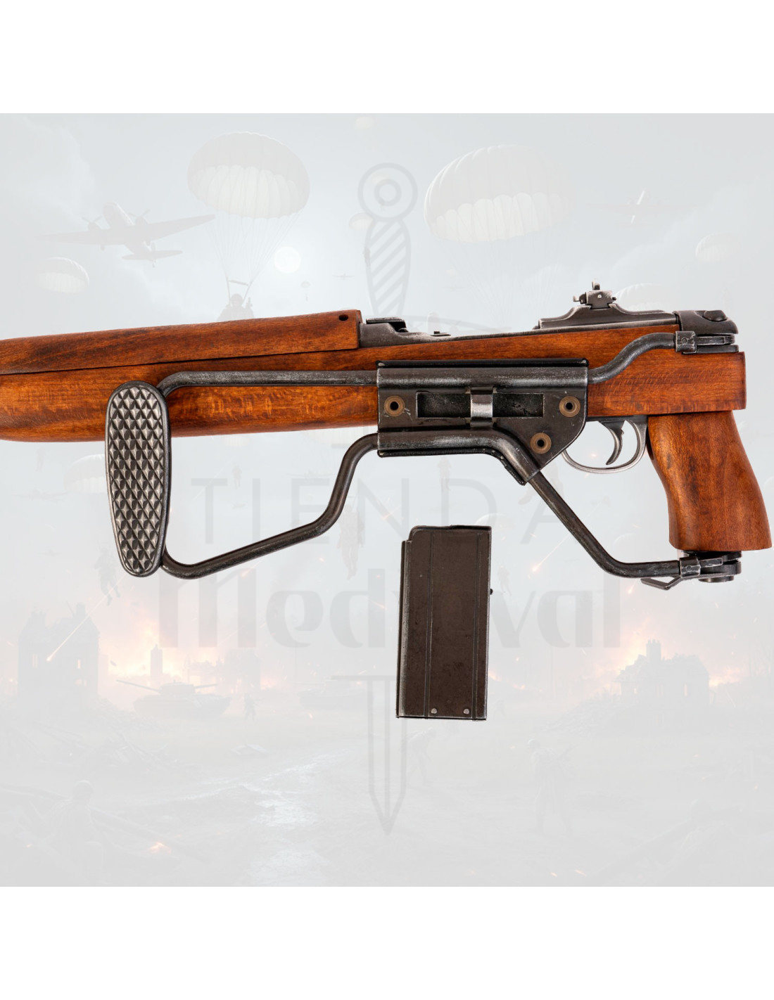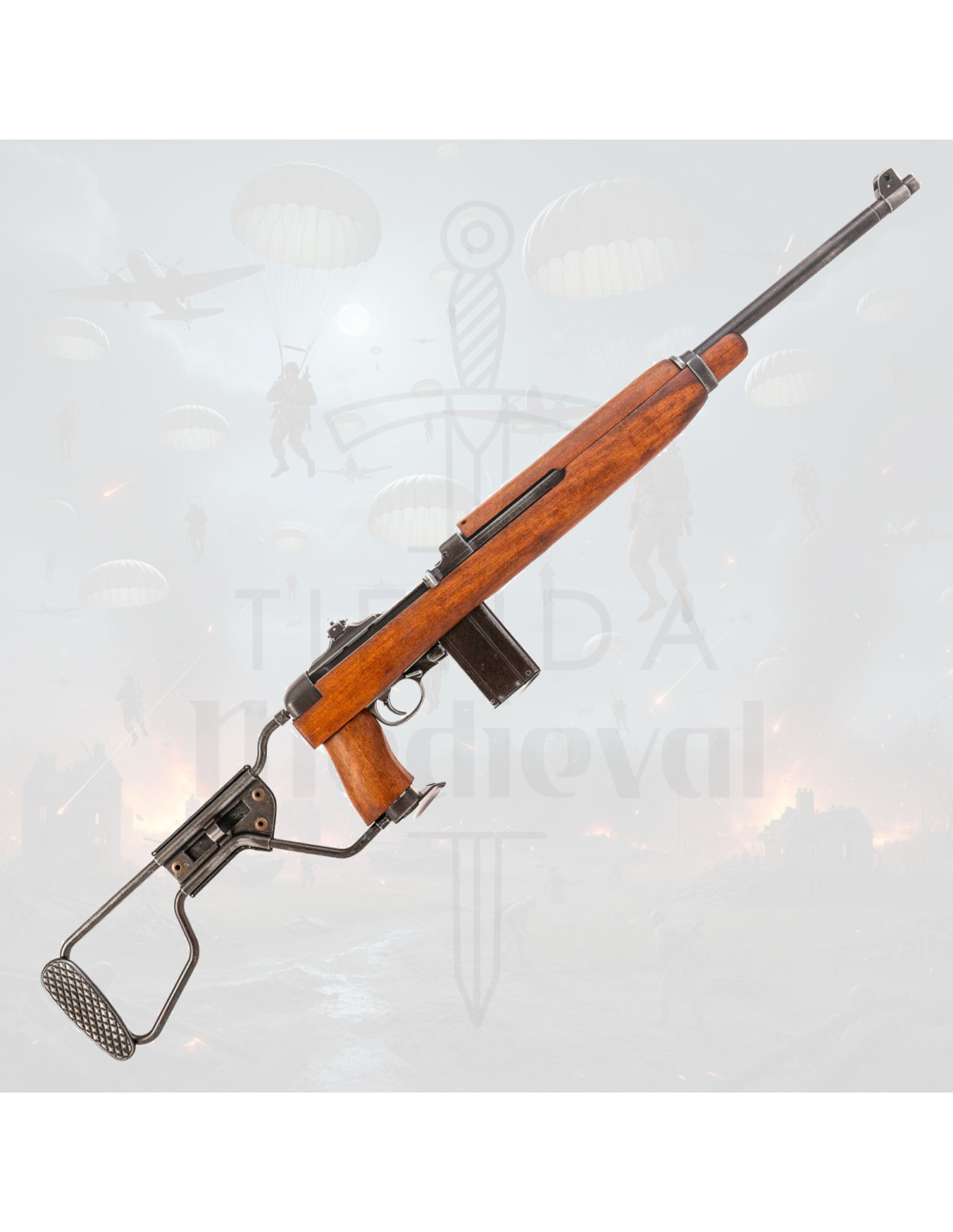 A Carabina M1A1 foi um recurso chave durante a Segunda Guerra Mundial, especialmente apreciada por tropas aerotransportadas por sua versatilidade e design compacto. Esta réplica recolhe essa história, conectando design e utilidade em um objeto de evocação histórica.