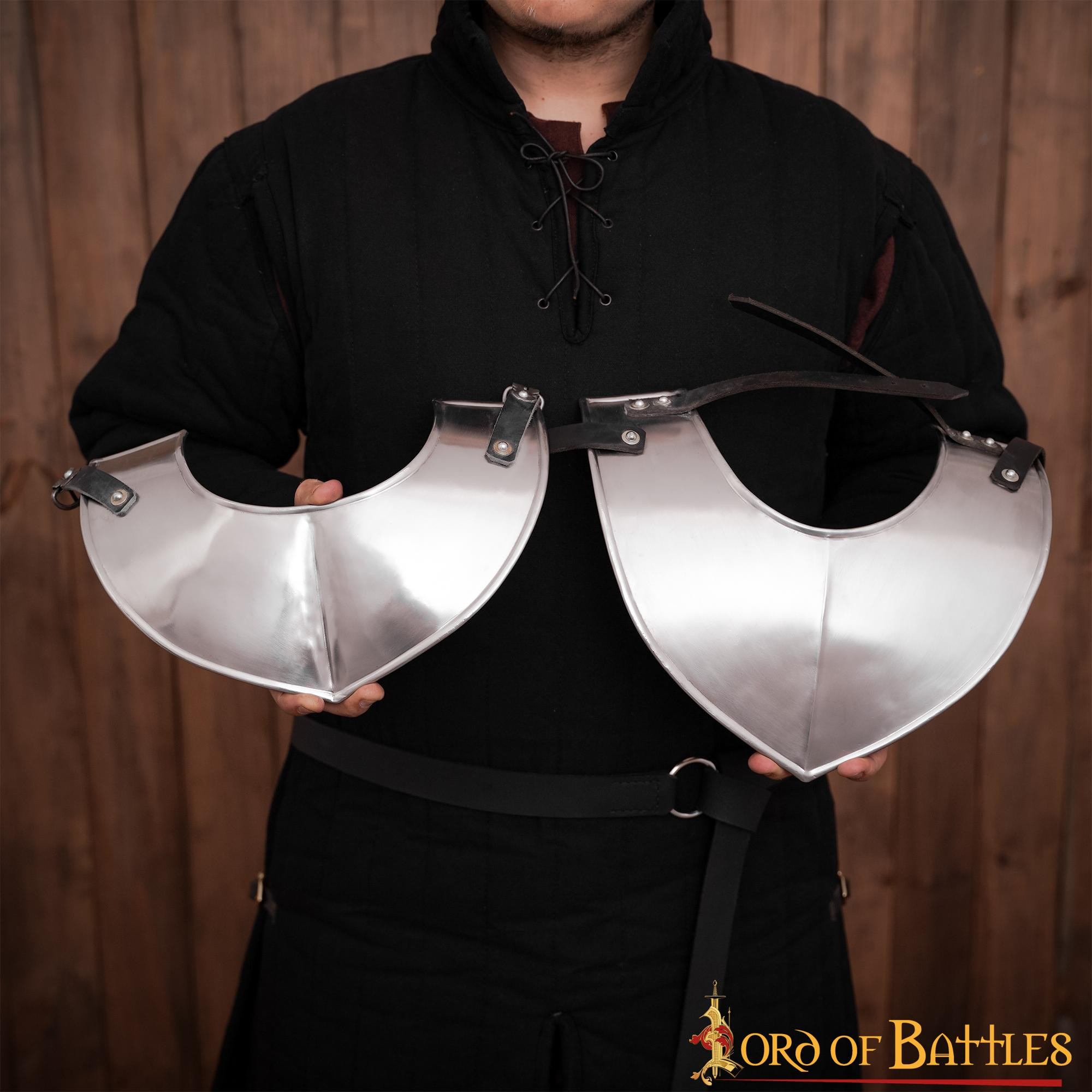 Este gorget foi habilmente trabalhado a partir de forte aço macio de calibre 18, tornando-o um excelente companheiro para suas sessões de LARP ou trajes de encenação medieval. O seu design não é apenas autêntico, mas também funcional, pois possui um conjunto de tiras robustas em pele genuína que o ajudam a fechá-lo com segurança. Além disso, se você quiser manter as ombreiras no lugar, também pode usar outro par de tiras de couro que estão incluídas.