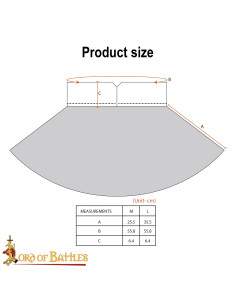 Disponível em dois tamanhos, médio e grande, você pode escolher o que melhor se adapta às suas necessidades, garantindo um ajuste confortável e seguro. A qualidade dos materiais e a atenção aos detalhes na sua fabricação fazem deste gorjal uma peça essencial para qualquer entusiasta da história medieval.