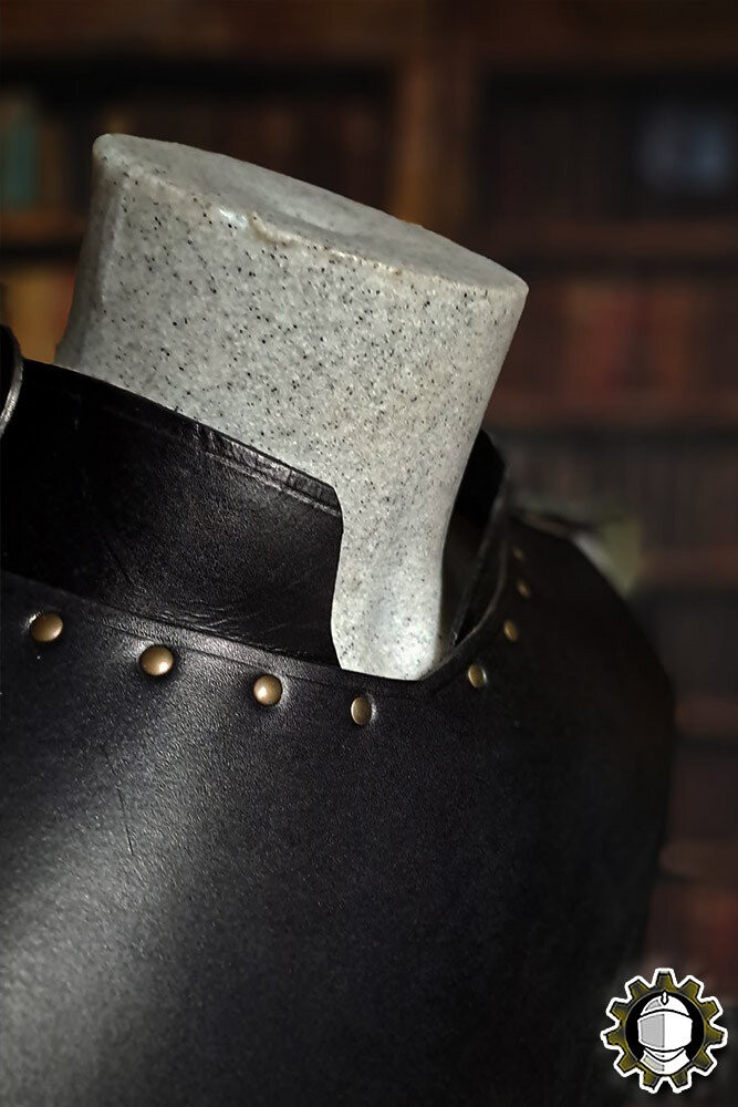 Imagine poder levar um toque de história e sofisticação a cada passo que você dá. A elegância do gorjal medieval em couro moldado na clássica cor preta é o complemento perfeito para o seu vestuário, ideal para qualquer evento onde você deseje se destacar.
