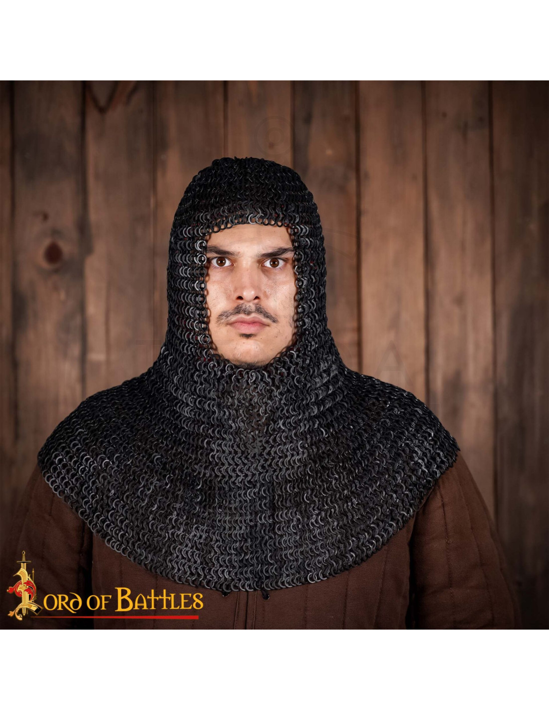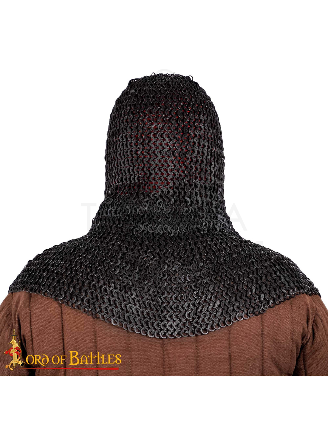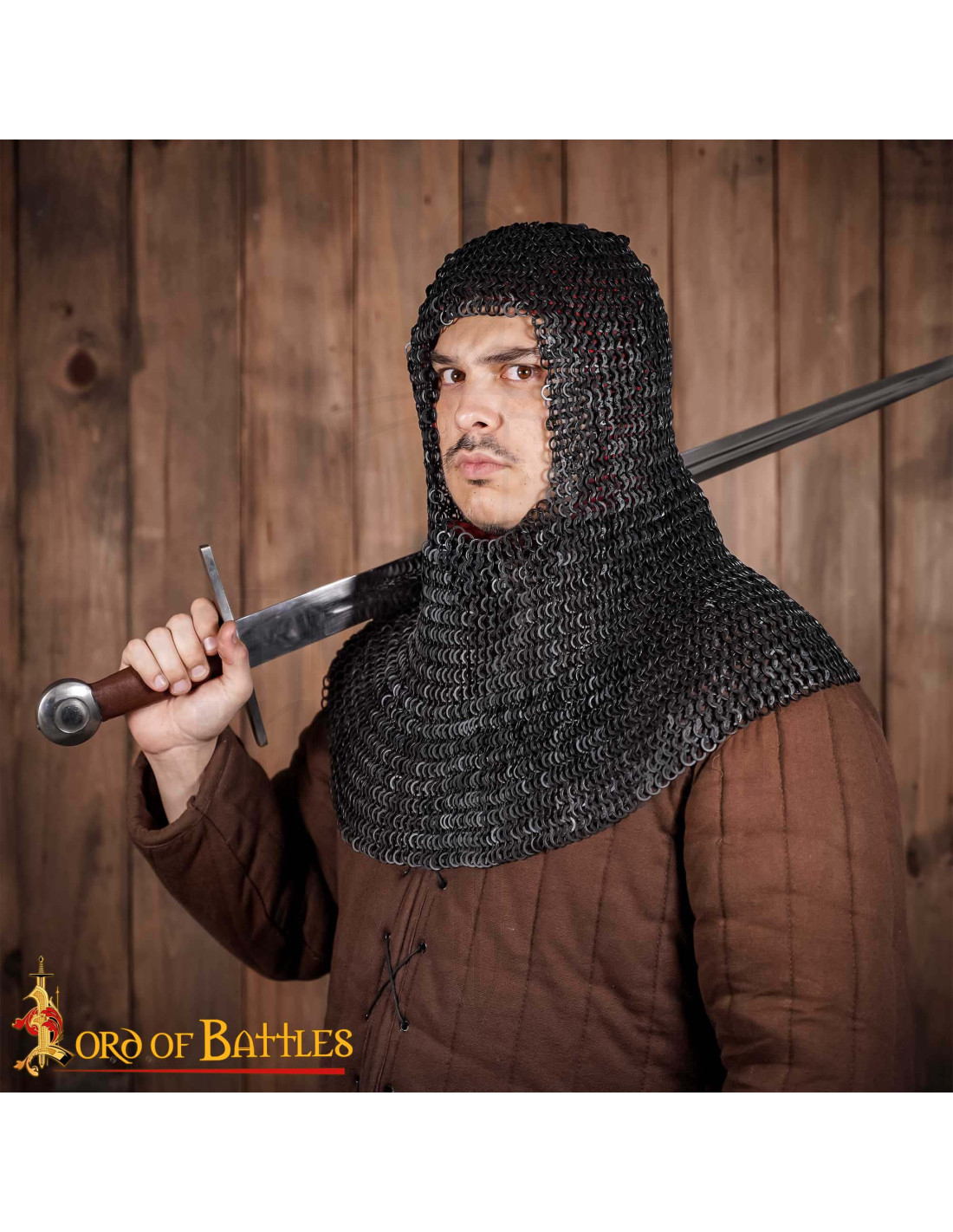 A montagem com anéis planos e remachados oferece uma sensação de robustez que se percebe ao usá-la, entregando segurança durante ensaios, combates coreografados ou longas jornadas em recriações, e ao mesmo tempo mantém a flexibilidade necessária para movimentos reais e naturais. Você pode usá-la sob um elmo ou combinada com acolchoados para maior conforto, facilitando sua integração com o restante do equipamento sem complicações.