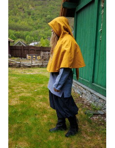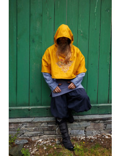 Gugel Viking em Lã modelo Bjomolf disponível em amarelo mostarda. Este gugel é perfeito para quem procura um estilo único e original. Com gola larga e bordados à mão, este gugel vai fazer você se destacar em qualquer ocasião.