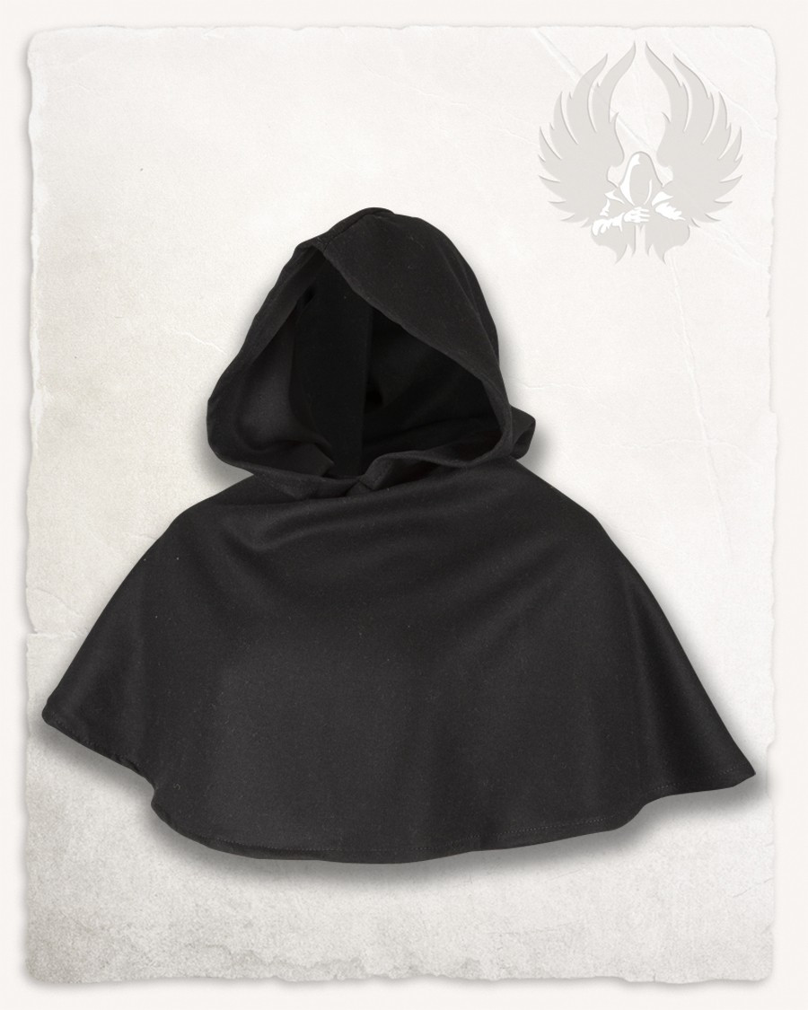Adicione um toque de autenticidade à sua roupa medieval com o capuz medieval Wolfram em lã preta. Não perca a oportunidade de adquirir esta peça única que combina estilo, conforto e proteção. Explore nossa seleção