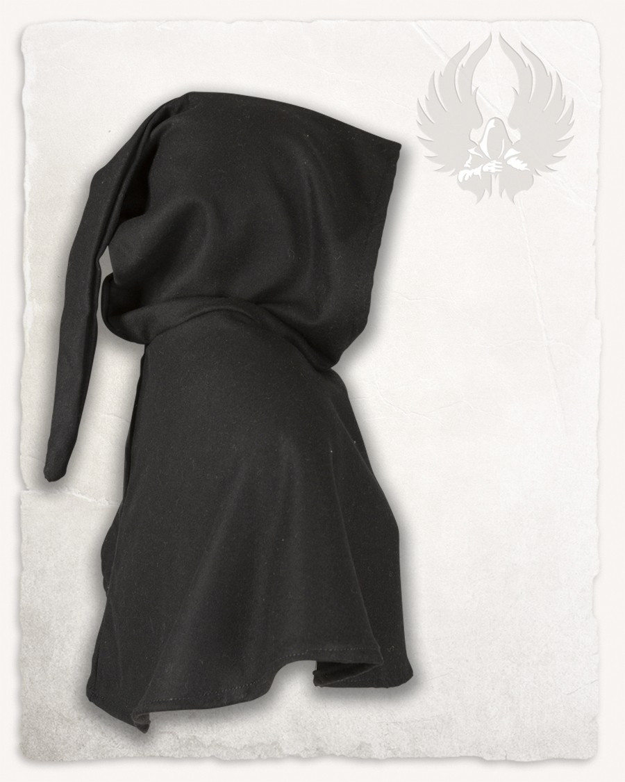 Capuz medieval em lã preta modelo Wolfram
