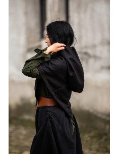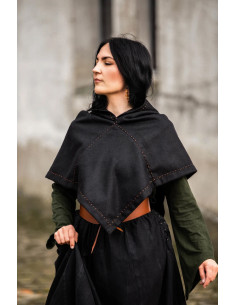 Mergulhe na autenticidade viking com o impressionante Gugel Halfdan, um modelo negro após um achado genuíno. Com um comprimento de aproximadamente 48cm a partir do ombro (ponto mais baixo) e uma abertura de cabeça de aproximadamente 75cm de circunferência, este gugel lhe dá um estilo viking distinto e autêntico.