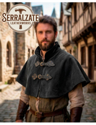 Feito em camurça de alta qualidade, o Gugel 'Folke' não é apenas um acessório, mas uma declaração de estilo. Quer esteja a embarcar numa aventura medieval ou simplesmente queira destacar-se no seu próximo evento, este gougel oferece-lhe o equilíbrio perfeito entre autenticidade e modernidade. Adquira já o seu e complete seu look com um toque medieval único!
