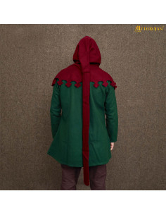 Perfeito para recriação histórica, LARP, teatro ou fotografia de época, o Gugel medieval em lã modelo Liripipe, cor vermelha, é uma peça que transforma qualquer traje em uma declaração de estilo e autenticidade.