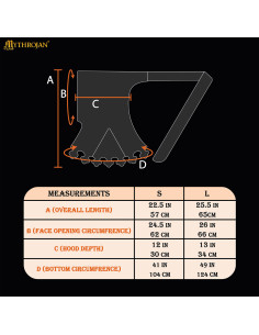 A caída generosa permite vesti-lo sobre túnicas, gambesões ou capas com total conforto, facilitando mudanças rápidas de vestuário e um ajuste natural ao redor do rosto. Por não ter fechos visíveis, a colocação é simples e o conjunto mantém linhas limpas, ideais para criar uma imagem cuidada e coerente com a época.