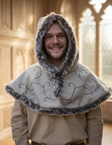 Capuz medieval com dragonas, cor cinza