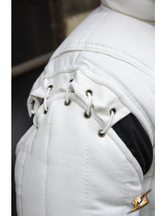 Além disso, os braços deste gambeson podem ser facilmente removidos desamarrando os cordões de algodão nos ombros e nas mangas. Cada cadarço é preso por ilhós de latão de longa duração, garantindo que os braços permaneçam no lugar durante seus movimentos mais intensos.