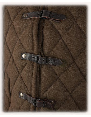 - Ajuste Personalizado: O Gambeson 'Burkhard' é forrado com feltro durável e possui fivelas laterais que permitem um ajuste ideal, adaptando-se a qualquer tipo de corpo. Garante uma experiência de usuário confortável e personalizada, dando-lhe a confiança necessária no campo de batalha.