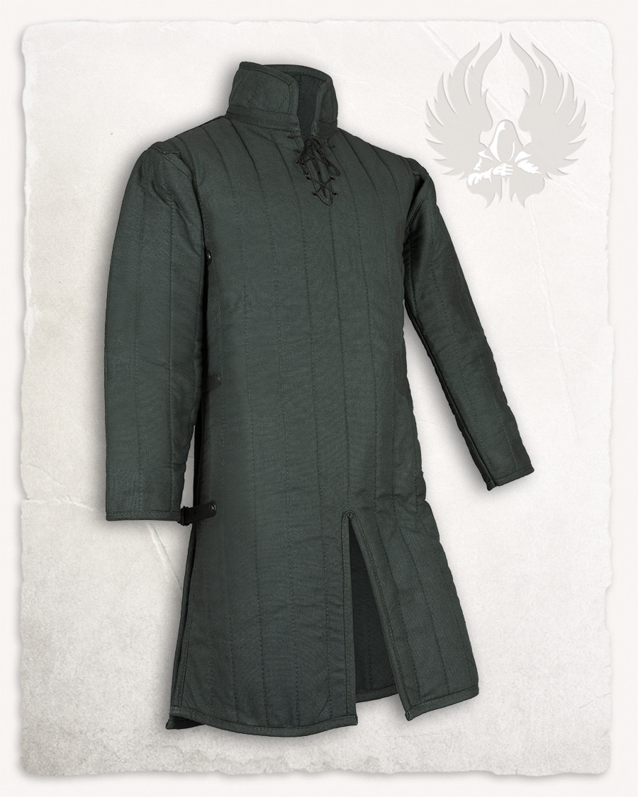 Vista-se com estilo e conforto com o modelo Medieval Gambesón Burkhard na cor verde. Prepare-se para a batalha com confiança e distinção!