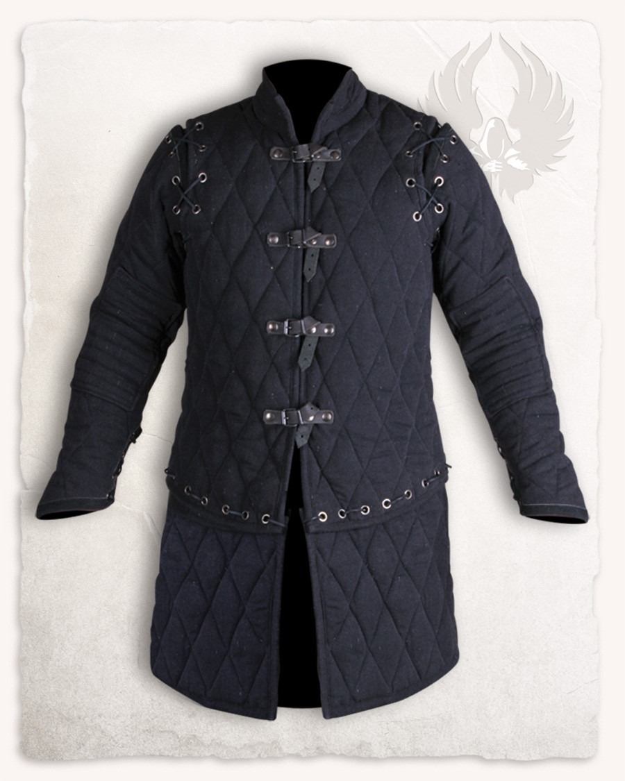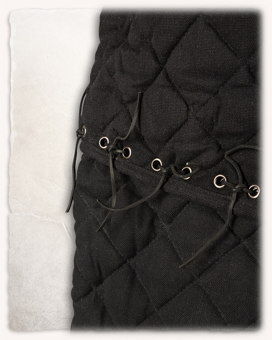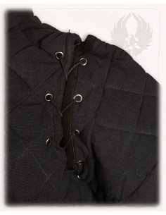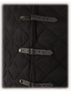 Gambesão medieval acolchoado com fivelas de couro, branco natural